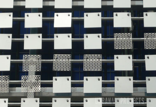 El proyecto consiste en 5000m2 de fachadada para el estacionamiento del aropuerto de Brisbane, Australia. Uno de los laterales parece fluir visto desde el exterior, producido por el movimento del viento sobre 250.000 paneles suspendidos de aluminio.